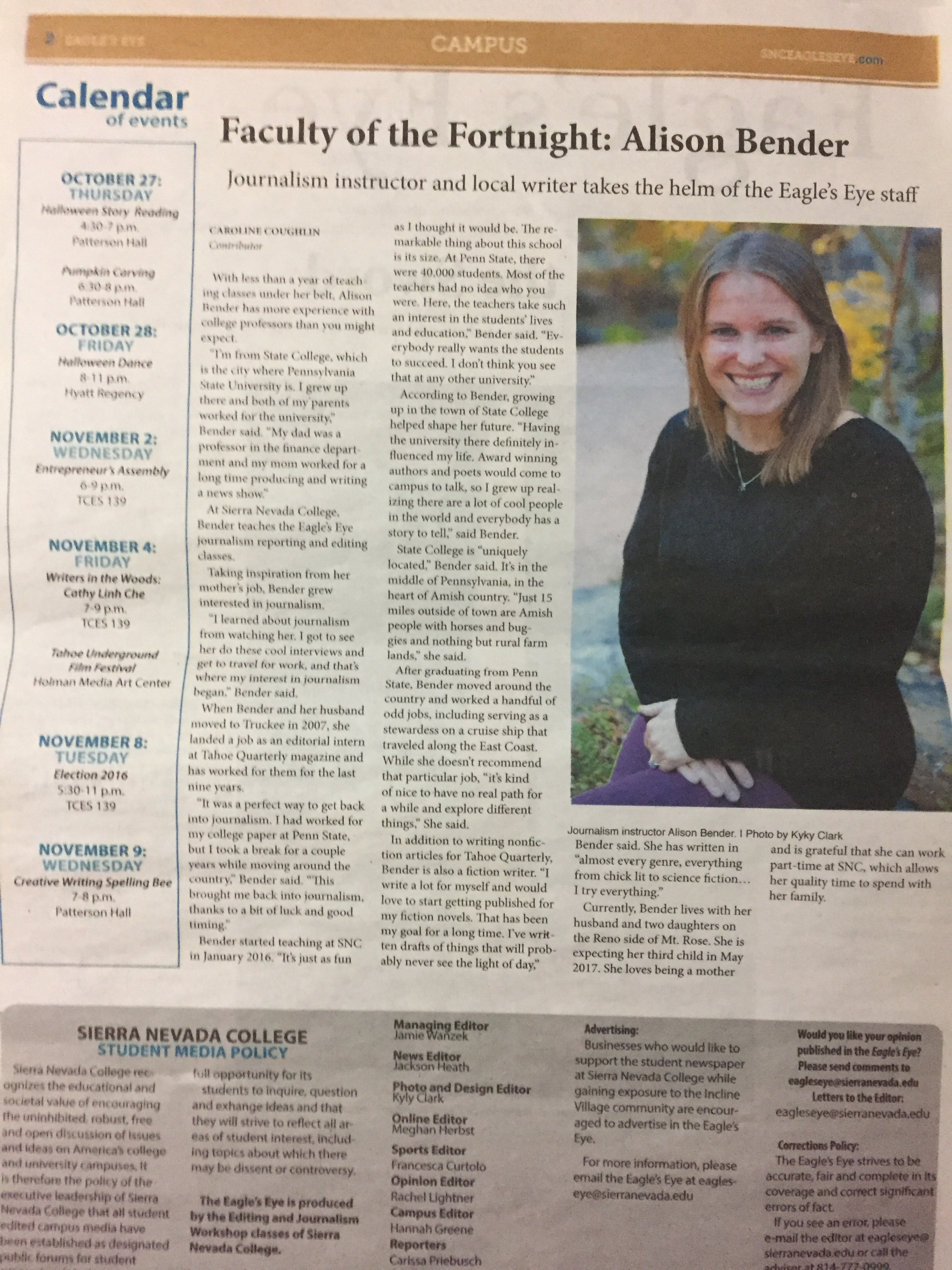 I wrote about quilt designer Karen Colbert, who is based in Incline. She creates these beautiful and intricate designs out of fabric that are so much more than just quilts—they’re art. She was really interesting because she never considered herself an artist growing up. She worked in an engineering firm and later got her degree in business administration from Sierra Nevada College. It wasn’t until she was pregnant with her daughter that she took up quilting was a hobby and yet, somehow, it became her livelihood. I think it’s fascinating the different routes people take in life, and a reminder that even though you may think you know and understand the track you’re on, things can always change.